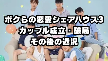 ボクらの恋愛シェアハウス3 [ボクらの恋愛シェアハウス3~Boys Love ∞ (アンリミテッド) ~]メンバー その後 カップル成立・破局 現在の近況[His Man Season 3] ボクらの恋愛シェアハウス3~Boys Love ∞ (アンリミテッド) ~ 全メンバー その後 カップル成立・破局 別れたカップルや結婚したメンバー現在の彼氏など一覧紹介 その後2026年2月現在特定の彼氏の存在や結婚の有無は確認できず、その後韓国でインフルエンサー活動を続けている ボクらの恋愛シェアハウス3